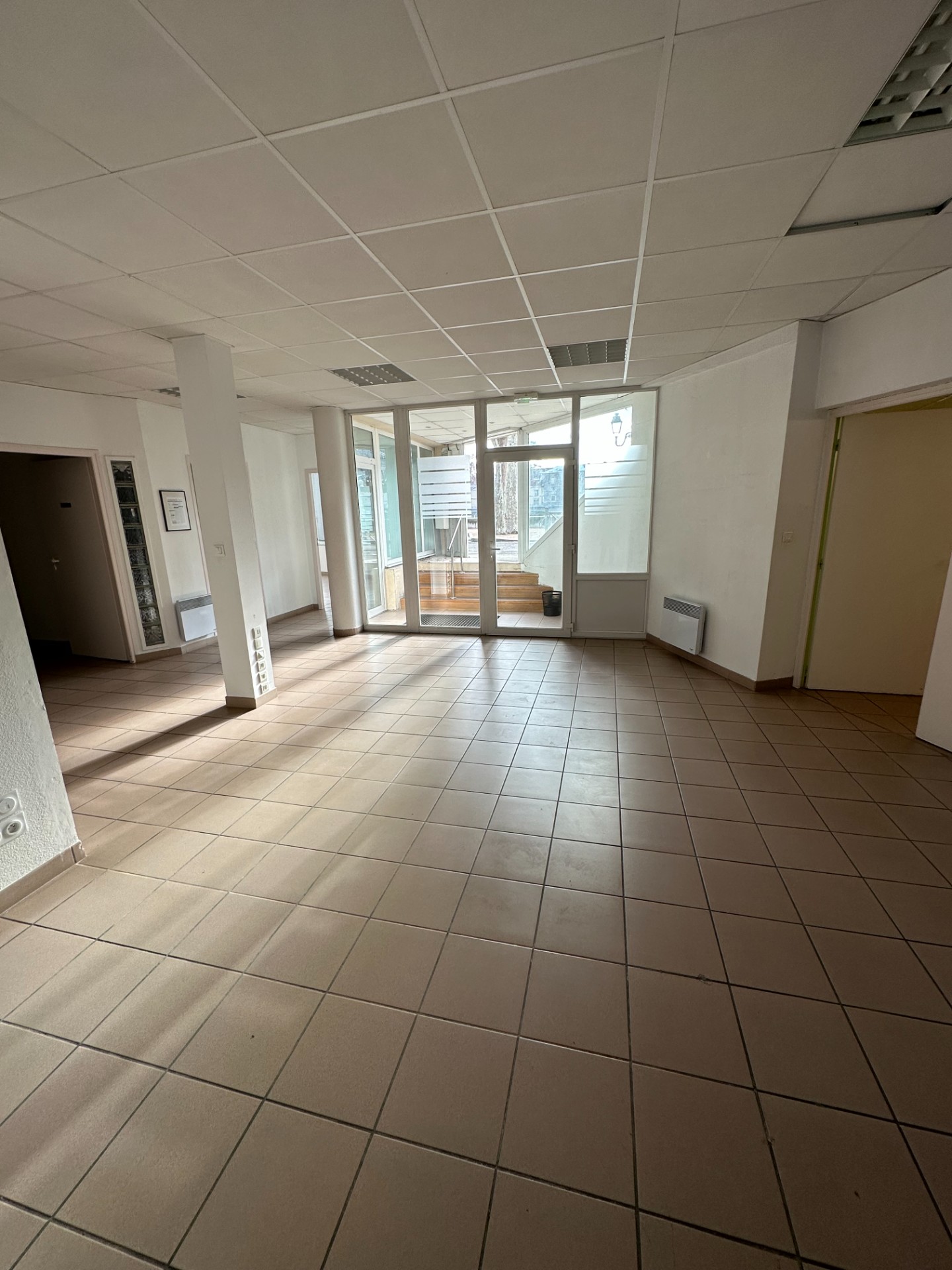 Local commercial de 130m² environ, en RDC d'un immeuble en copropriété. Comprenant un sas d'entrée avec une salle de réception, 2 bureaux avec fenêtres, un coin cuisine avec point d'eau, toilettes avec lavabo, local technique avec remise. Salle d'attente, une seconde remise borgne et un bloc sanitaire. disponible à partir du 1er mars 2025. Charges à hauteur de 30€/mois comprenant les charges communes, l'eau froide et les ordures ménagères. Honoraire bail professionnel à hauteur de 1 118€TTC, bail commercial à hauteur de 1 932€TTC.